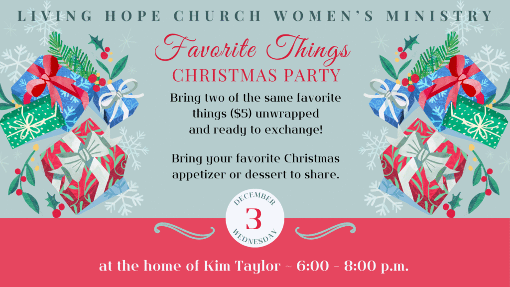 Join us for our second annual Favorite Things Christmas Party on 12/3!